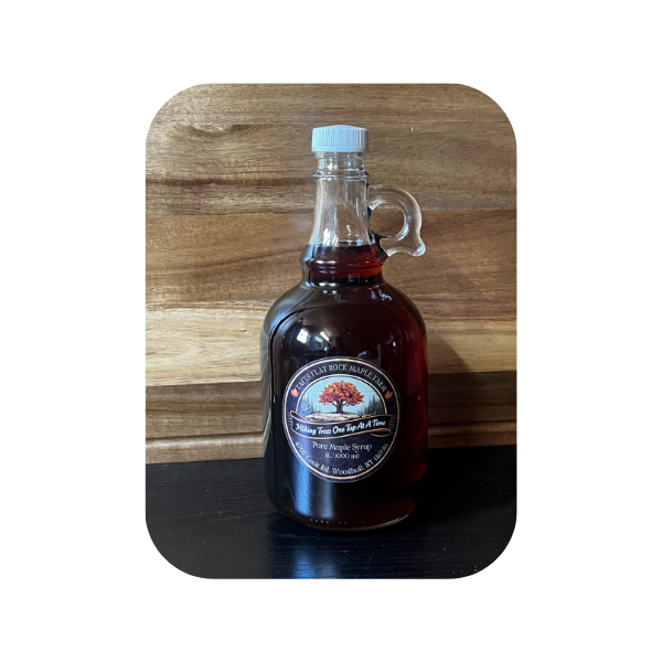 The name Flat Rock Maple Farm comes directly from the land itself. Our woods are filled with large, flat rock formations surrounded by maple trees. Historically, our family harvested flagstone from this land, as it was highly sought after. The name honors both the landscape and the working history tied to it.